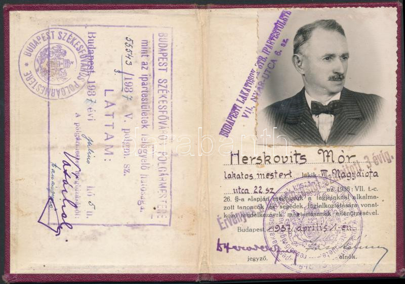 1937 A Budapesti Lakatosok Stb. Ipartestülete, fényképes tagsági könyv https://www.darabanth.com/de/276-Fernauktion/276.0/Andere-Sammelgebiete/Dokument~200017/1937-A-Budapesti-Lakatosok-Stb-Ipartestulete-fenykepes-tagsagi-konyv~II1411389