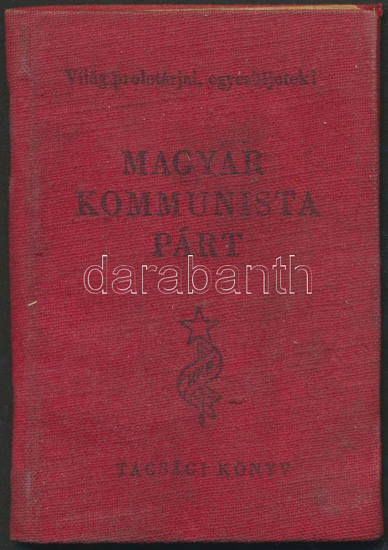 1948-1949 Magyar Kommunista Párt tagsági könyve, Rákosi Mátyás aláírás... https://www.darabanth.com/de/276-Fernauktion/276.0/Andere-Sammelgebiete/Dokument~200017/1948-1949-Magyar-Kommunista-Part-tagsagi-konyve-Rakosi-Matyas-alairasaval-es-MDP-s-bel~II1412264