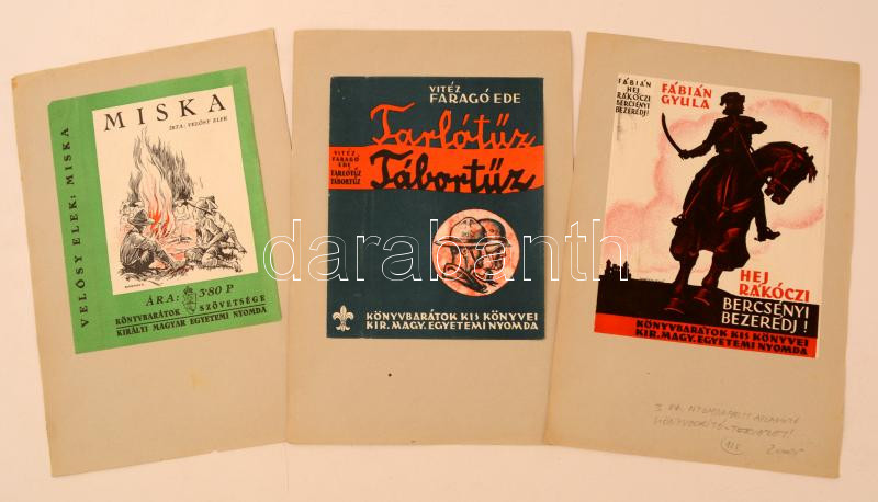 cca 1930-1940 Borítótervek könyvekhez, 3 db kartonra ragasztva(Hej Rák... https://www.darabanth.com/de/276-Fernauktion/276.0/Andere-Sammelgebiete/Drucksachen~200028/cca-1930-1940-Boritotervek-konyvekhez-3-db-kartonra-ragasztvaHej-Rakoczi-Bercsenyi-Bezere~II1412483