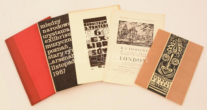 Ex librisekről szóló katalógusok, 5 db, lengyel és angol nyelven, sok érdekes adattal, és illusztrációkkal. Különféle kiadásban, papír és félvászon kötésben, változó állapotban. / Ex libris Catalogues, 5 pc, in polish and english language, paper and half-linen-binding, with a lot of interesting informations, and illustrations.