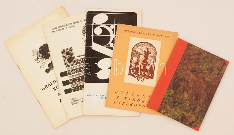 Ex librisekről szóló katalógusok, 5 db, lengyel nyelven, sok érdekes adattal, és illusztrációkkal. Különféle kiadásban, papír és félvászon kötésben, változó állapotban. / Ex libris Catalogues, 5 pc, in polish language, paper and half-linen-binding, with a lot of interesting informations, and illustrations.
