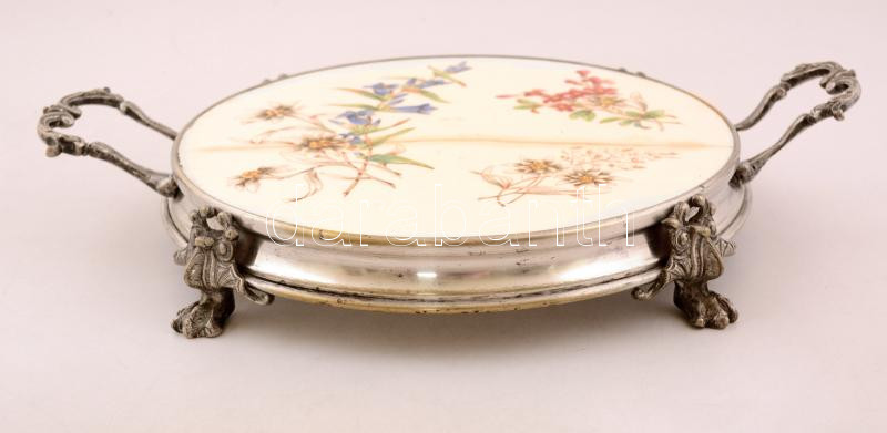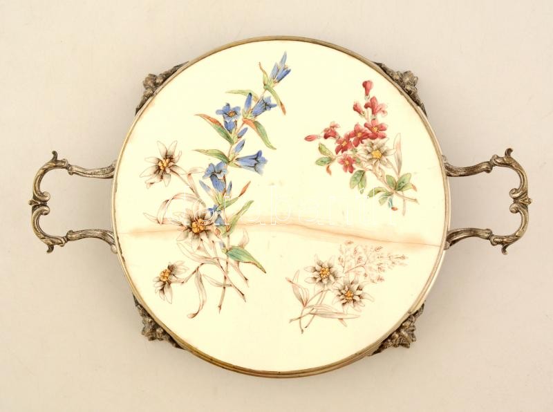 Antik fajansz torta tál, részben kézzel festett, repedéssel, fém tálcá... https://www.darabanth.com/de/276-Fernauktion/276.0/Andere-Sammelgebiete/Flohmarkt~200044/Antik-fajansz-torta-tal-reszben-kezzel-festett-repedessel-fem-talcaban-d25-cm~II1415178