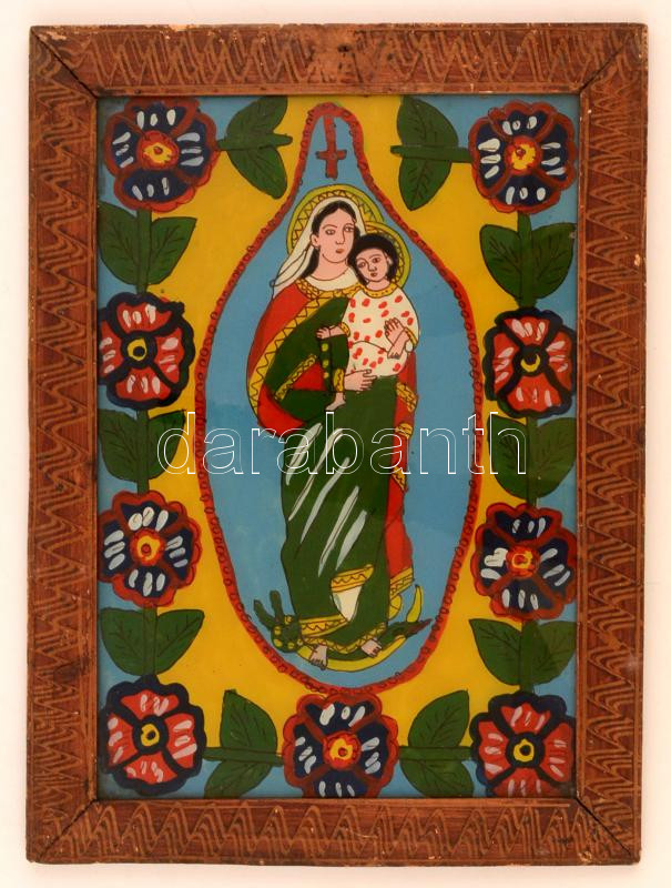 Beschreibung: Erdélyi festett üveg ikon keretben, 37×26 cm