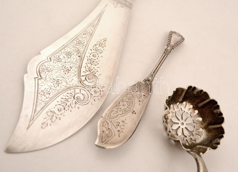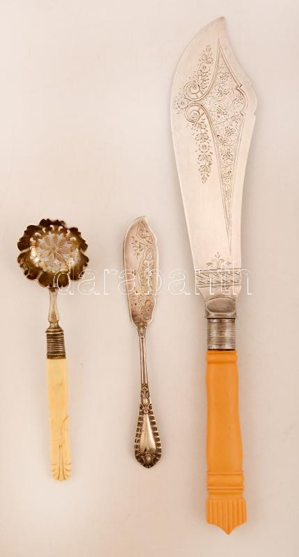 Ezüstözött evőeszközök, 3 db: tortalapát bakelit nyéllel, porcukorszór... https://www.darabanth.com/de/276-Fernauktion/276.0/Andere-Sammelgebiete/Flohmarkt~200044/Ezustozott-evoeszkozok-3-db-tortalapat-bakelit-nyellel-porcukorszoro-pastetom-szedo~II1408846