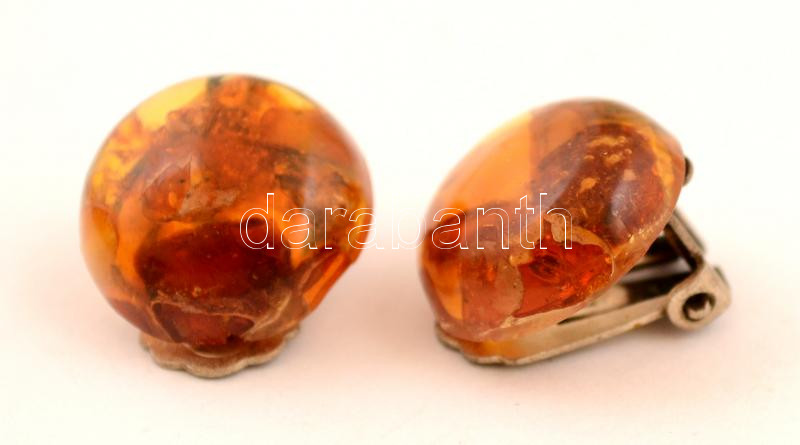 Beschreibung: Félgömb alakú borostyán fülklipsz párban, d: 1,5 cm