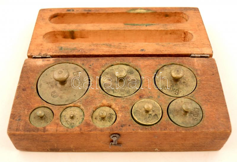 Régi hiánytalan súlykészlet, jelzett, eredeti fa tokjában, 8 db, tok: ... https://www.darabanth.com/de/276-Fernauktion/276.0/Andere-Sammelgebiete/Flohmarkt~200044/Regi-hianytalan-sulykeszlet-jelzett-eredeti-fa-tokjaban-8-db-tok-65x15x5-cm~II1409013