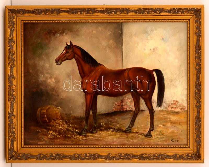 Rónai Antal (1924-): Figyelő ló. Olaj, farost, jelzett, keretben, 30... https://www.darabanth.com/de/276-Fernauktion/276.0/Andere-Sammelgebiete/Flohmarkt~200044/Ronai-Antal-1924-Figyelo-lo-Olaj-farost-jelzett-keretben--30C39740-cm~II1414670