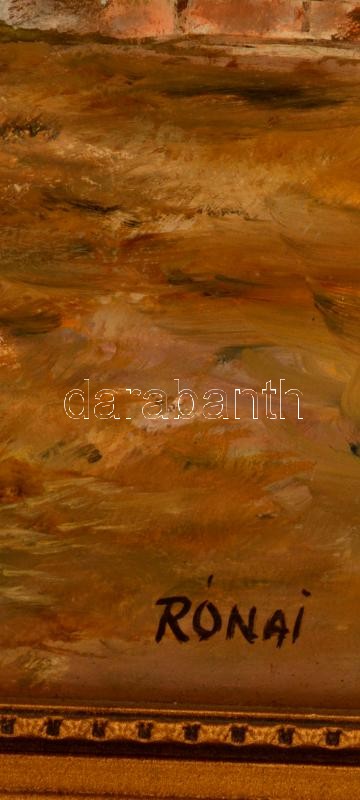 Beschreibung: Rónai Antal (1924-): Figyelő ló. Olaj, farost, jelzett, keretben, 30×40 cm