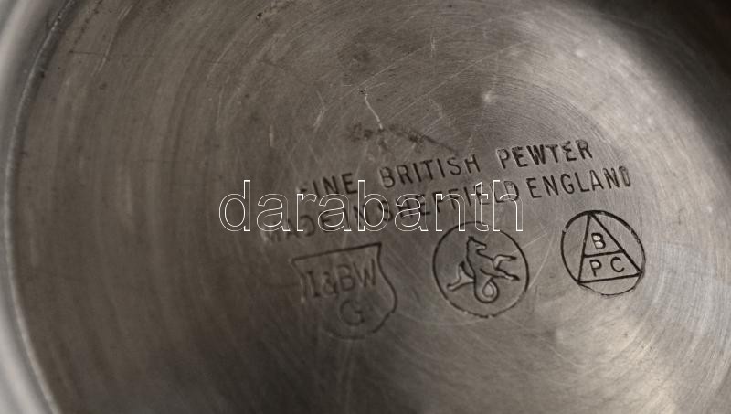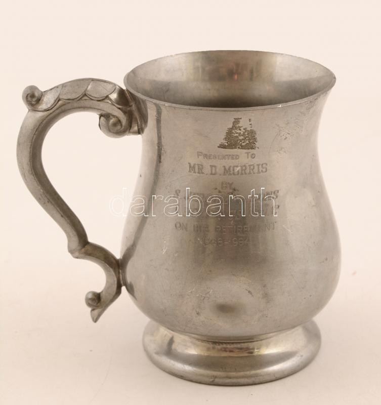 Beschreibung: Sheffieldi ón korsó, horpadásokkal, jelzett, gravírozott feliratokkal, m:12 cm, kb 0,4 l