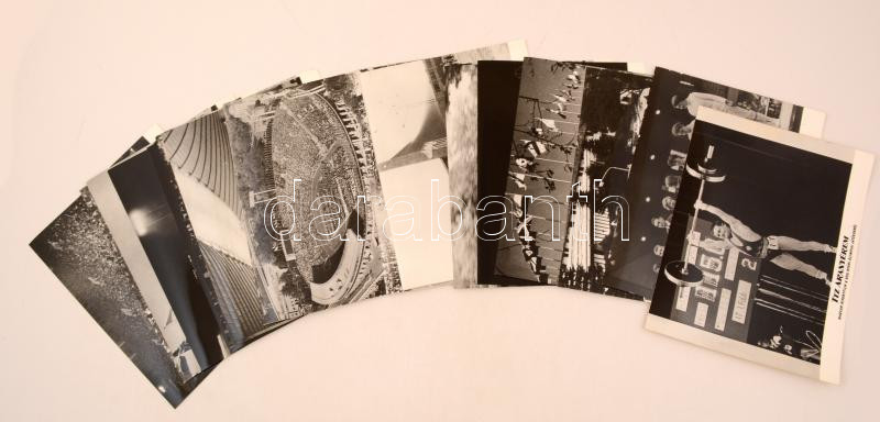 Beschreibung: 1964 Tokio, XVIII. Nyári olimpiai játékok, magyar riportfilm állóképei, hiteles dokumentumfotók, 35 db fotó, 18x24 cm