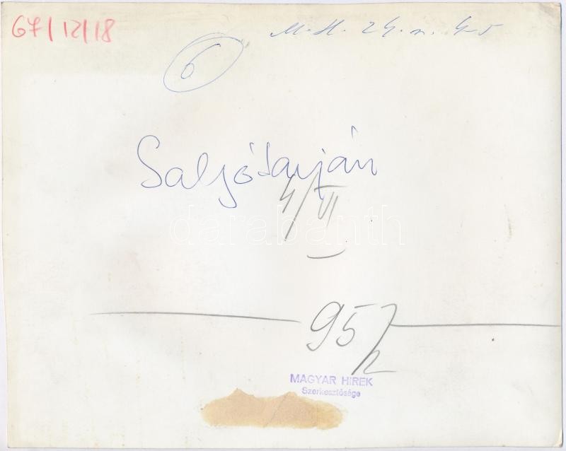 Beschreibung: Salgótarján, Magyar Hírek szerkesztősége fotó, jelzett, 19x24cm