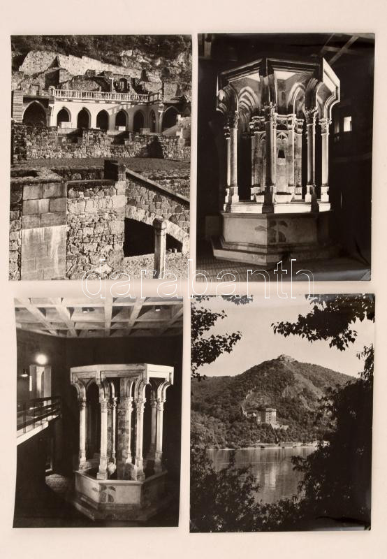 Beschreibung: Visegrád, a vár és a fellegvár, palotarészletek, 4 db feliratozott fotó, 23x16 cm