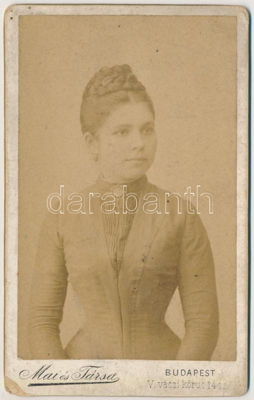 cca 1880 Egy hölgy arcképe, keményhátú műtermi fotó, Mai és Társa Buda... https://www.darabanth.com/de/276-Fernauktion/276.0/Andere-Sammelgebiete/Foto~200020/cca-1880-Egy-holgy-arckepe-kemenyhatu-mutermi-foto-Mai-es-Tarsa-Budapest-11x7-cm~II1411193