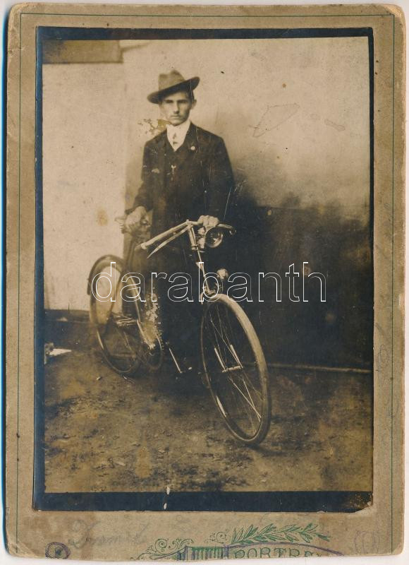 cca 1910 Férfi kerékpárral, keményhátú fotó, karton levágva, 13x9 cm https://www.darabanth.com/de/276-Fernauktion/276.0/Andere-Sammelgebiete/Foto~200020/cca-1910-Ferfi-kerekparral-kemenyhatu-foto-karton-levagva-13x9-cm~II1411431