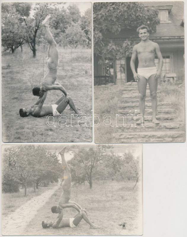 Beschreibung: cca 1940-1950 Tornászok, 3 db fotó, 9x14 cm