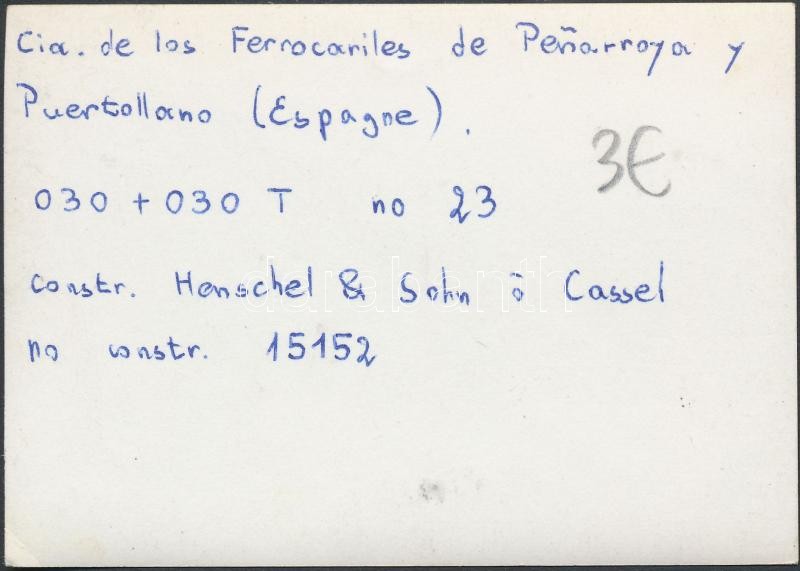 cca 1940 A spanyol vasút, hátoldalon feliratozott fotó, 6x9 cm / railw... https://www.darabanth.com/de/276-Fernauktion/276.0/Andere-Sammelgebiete/Foto~200020/cca-1940-A-spanyol-vasut-hatoldalon-feliratozott-foto-6x9-cm-railway-in-Spain-with-descripti~II1414915