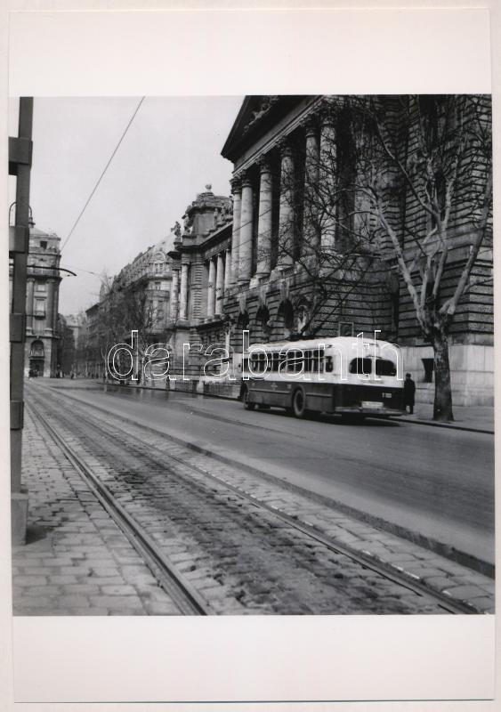 cca 1959 Budapest, trolibusz a Kossuth téren, Kotnyek Antal (1921-1990) fotóriporter hagyatékában őrzött vintage negatívról készült mai nagyítás 25x18 cm-es fotópapíron