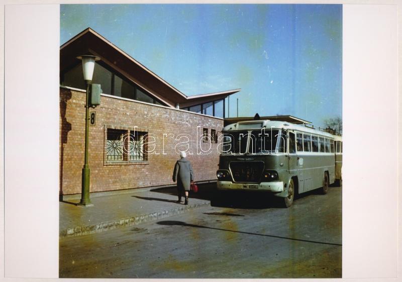 Beschreibung: cca 1970 Kecskemét, távolsági autóbusz pályaudvar, korabeli negatívról készült mai nagyítás 18x25 cm-es fotópapírra