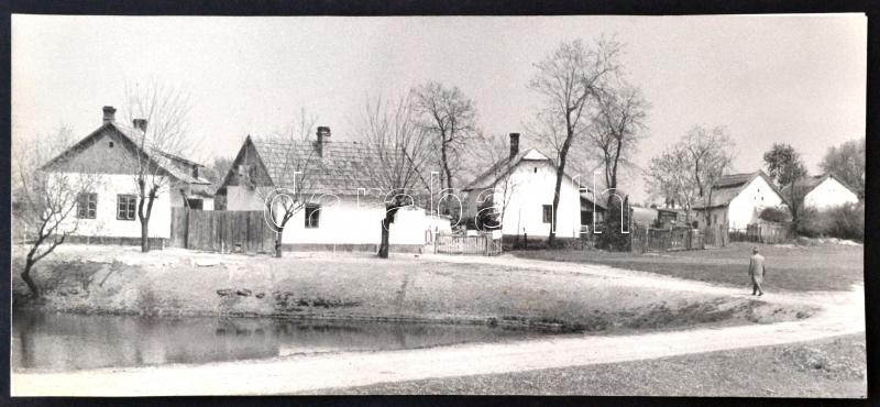 Beschreibung: cca 1970 Krisch Béla: Faluvég, pecséttel jelzett vintage fotóművészeti alkotás, kiállítási emlékpecsétekkel, 18x38 cm