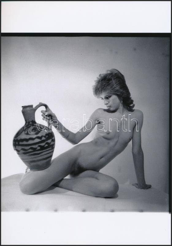 Beschreibung: cca 1977 Közös fénykép a nagy köcsöggel, finoman erotikus fénykép, korabeli negatívról készült mai nagyítás, 25x18 cm / erotic photo, 25x18 cm