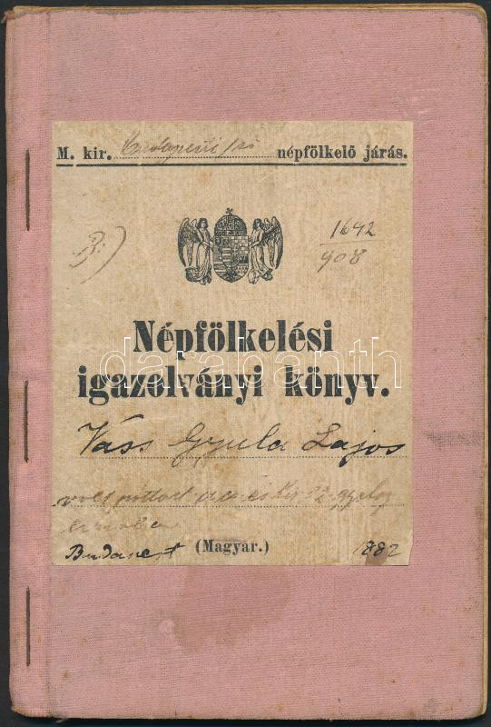 Beschreibung: 1908 A M. kir. budapesti népfölkelő járás által kiállított népfölkelési igazolványi könyv