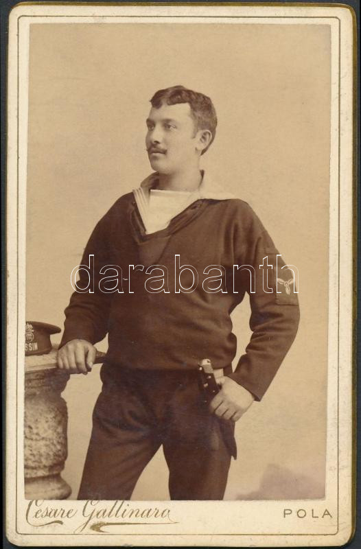 cca 1900 Osztrák-magyar matróz portréja. Keményhátú kabinetfotó Cesare... https://www.darabanth.com/de/276-Fernauktion/276.0/Andere-Sammelgebiete/Militaria~200026/cca-1900-Osztrak-magyar-matroz-portreja-Kemenyhatu-kabinetfoto-Cesare-Gallinara-polai-muter~II1415009