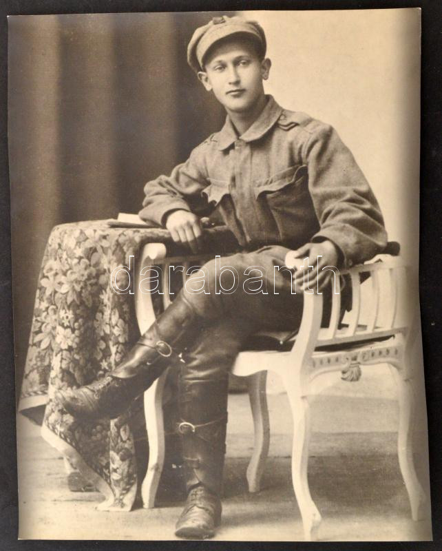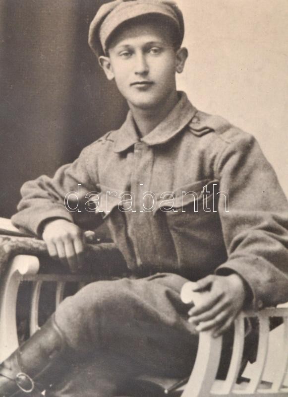 cca 1919 Portrait of a soldier of the Red Army, photograph with notes on its back, 36,5×28 cm