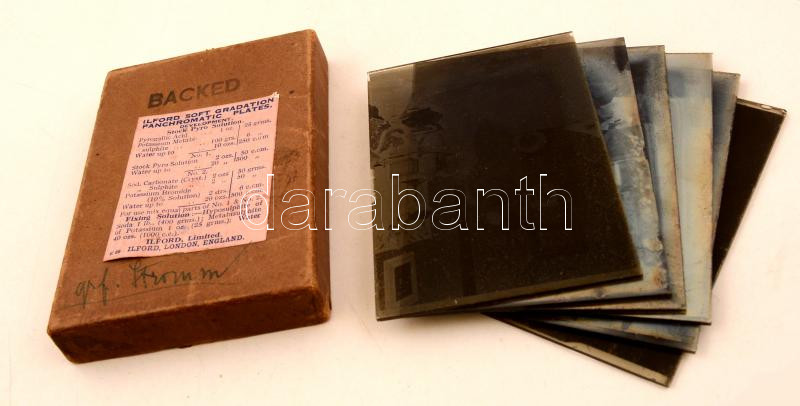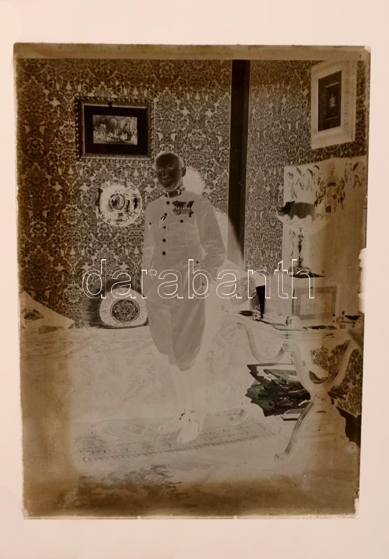 cca 1925 Gróf Stromm feliratú dobozban 7 db üveglemez, öt felvételen katona egyenruhában egy fiatalember, kettő felvétel strandon készült, kutatásra érdemes tétel, hogy arról a Stromm Marcelről van-e szó, aki később altábornagy volt, 6x9 cm