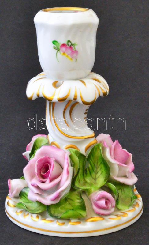 Beschreibung: Herendi rózsás gyertyatartó, levehető fejjel, kézzel festett, jelzett, több apró lepattanással, m: 18,5 cm