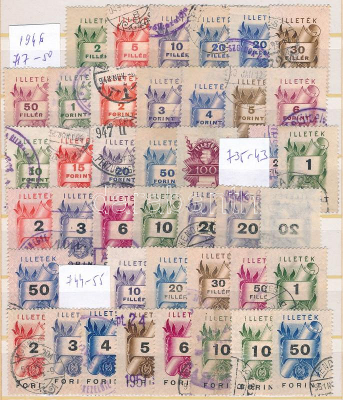 1946-1954 Kis illetékbélyeg tétel (7.230) https://www.darabanth.com/de/276-Fernauktion/276.0/Andere-Sammelgebiete/Stempelmarken~200016/1946-1954-Kis-illetekbelyeg-tetel-7230~II1414565