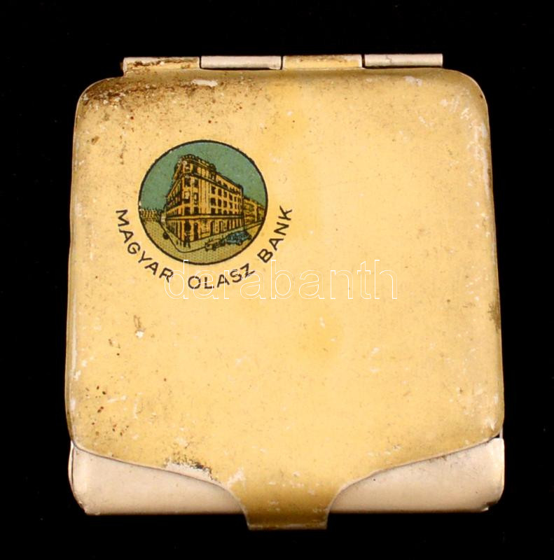 "Magyar Olasz Bank" feliratú fém gyufásdoboz https://www.darabanth.com/de/276-Fernauktion/276.0/Andere-Sammelgebiete/Werbungen~200021/Magyar-Olasz-Bank-feliratu-fem-gyufasdoboz~II1409506