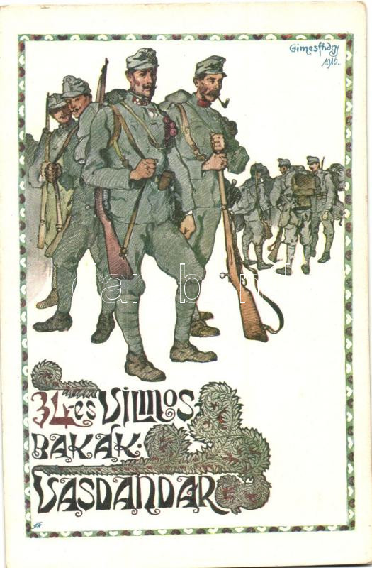 34-es Vilmos Bakák Vasdandár, Gimes Lajos főhadnagy alkotása / Hungari... https://www.darabanth.com/de/276-Fernauktion/276.0/Ansichtskarten/Militaria~91/34-es-Vilmos-Bakak-Vasdandar-Gimes-Lajos-fohadnagy-alkotasa-Hungarian-infrantry-unit-WWI-mil~II1413690