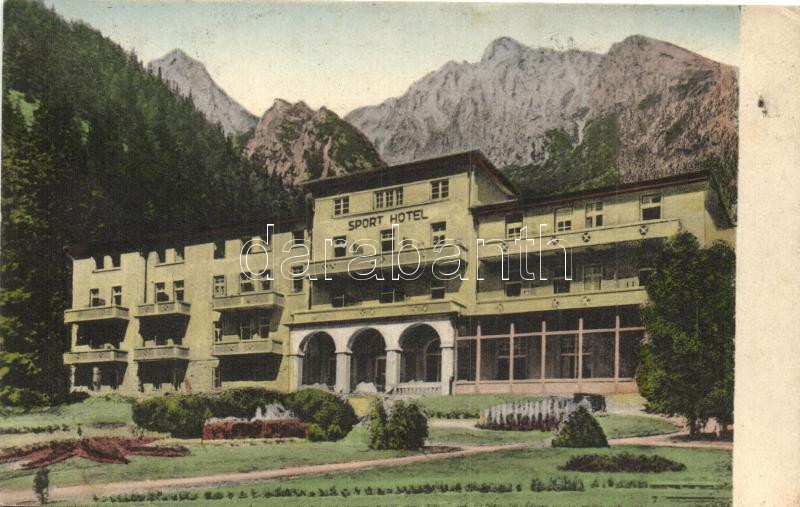 Tátra, Tarajka, Hrebienok; Sport szálló / hotel (EK) https://www.darabanth.com/de/276-Fernauktion/276.0/Ansichtskarten/Slowakei~7/Tatra-Tarajka-Hrebienok-Sport-szallo-hotel-EK~II1410016