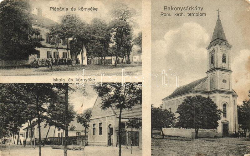 Bakonysárkány, Római katolikus templom, plébánia, iskola (EK) https://www.darabanth.com/de/276-Fernauktion/276.0/Ansichtskarten/Ungarn~5/Bakonysarkany-Romai-katolikus-templom-plebania-iskola-EK~II1410672
