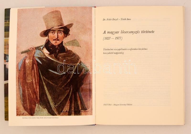 Dr. Fehér Dezső-Török Imre: A magyar lóversenyzés története. (1827-1977) Történelmi visszapillantás a reformkor küzdelmes korszakától napjainkig. Budapest, 1977, NATURA - Magyar Lóverseny Vállalat, 155 p. Kiadói egészvászon kötés, kiadói picit szakadt papírborítóban.
