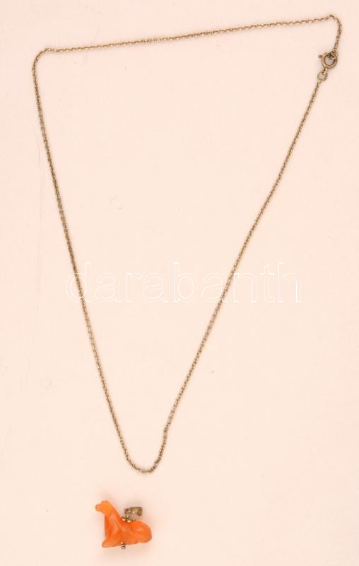 Beschreibung: Ezüst(Ag) lánc, jelzett, h: 43 cm, nettó: 2,8 g + ezüst(Ag) akasztós medállal, jelzett