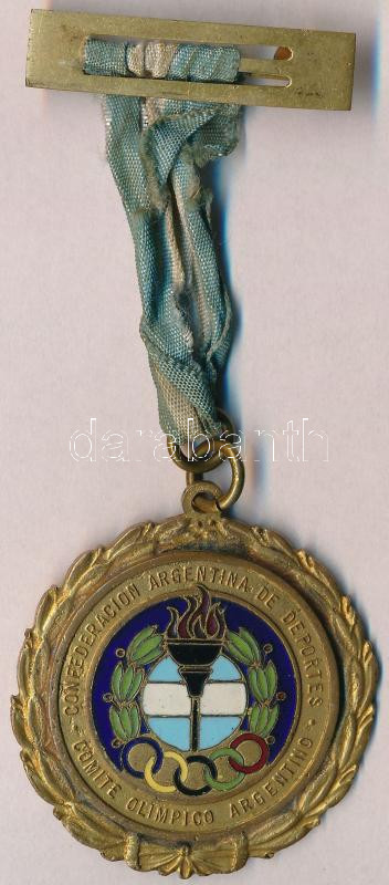 Argentína 1952. "Argentin Sportszövetség - Argentin Olimpiai Szövetség / XV. Olimpiai Játékok Helsinki 1952" zománcozott, aranyozott Br érem mellszalagon (40mm) T:2 erősen sérült szalaggal