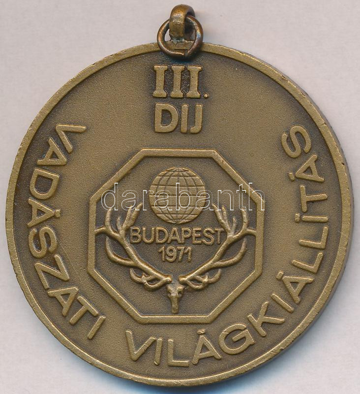 Olcsai Kiss Zoltán (1895-1981) 1971. "Vadászati Világkiállítás III. Díj" Br díjérem füllel (45mm) T:2