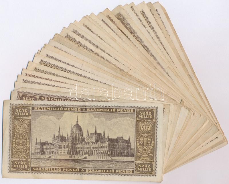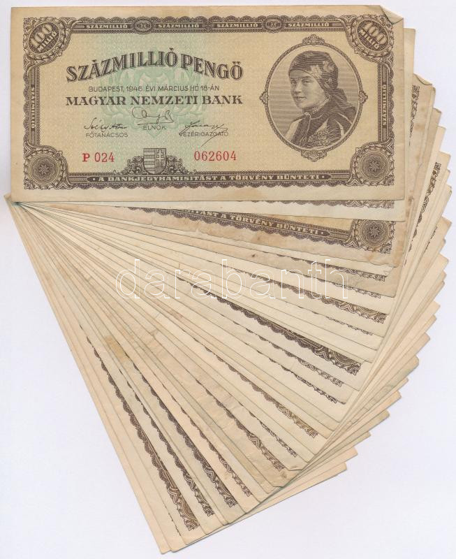 1946. 100.000.000P (30x) T:III,III- https://www.darabanth.com/de/276-Fernauktion/276.0/Numismatik/Ungarische-Banknoten~300008/1946-100000000P-30x-TIII-III-~II1414211