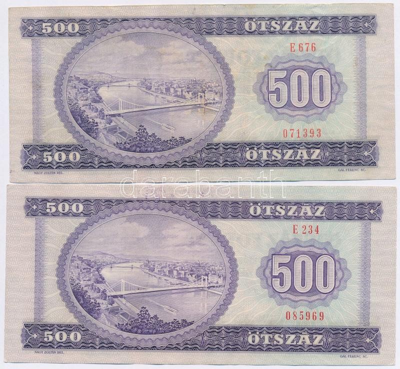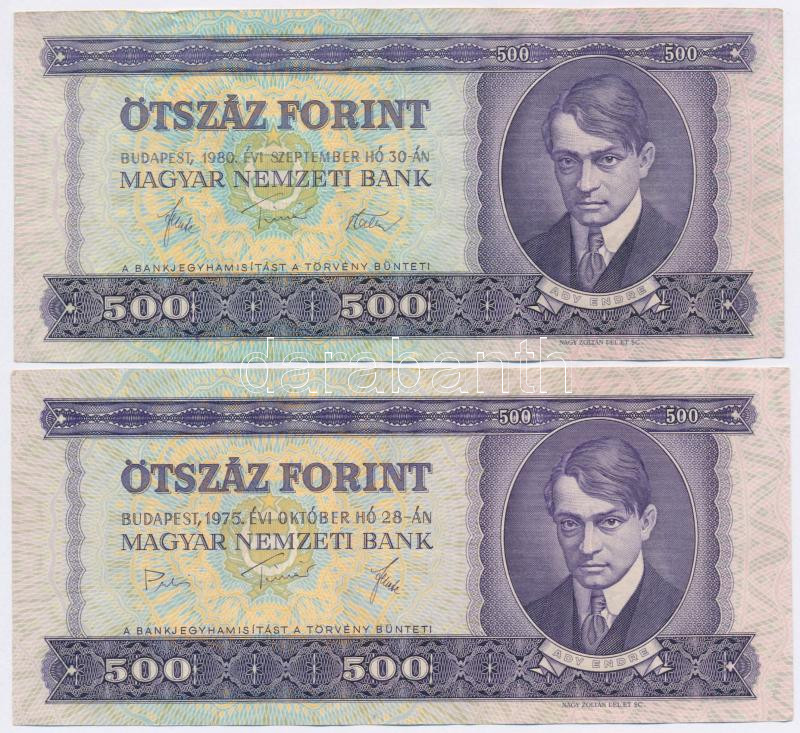 1975-1980. 500Ft (2x) T:III https://www.darabanth.com/de/276-Fernauktion/276.0/Numismatik/Ungarische-Banknoten~300008/1975-1980-500Ft-2x-TIII~II1415392
