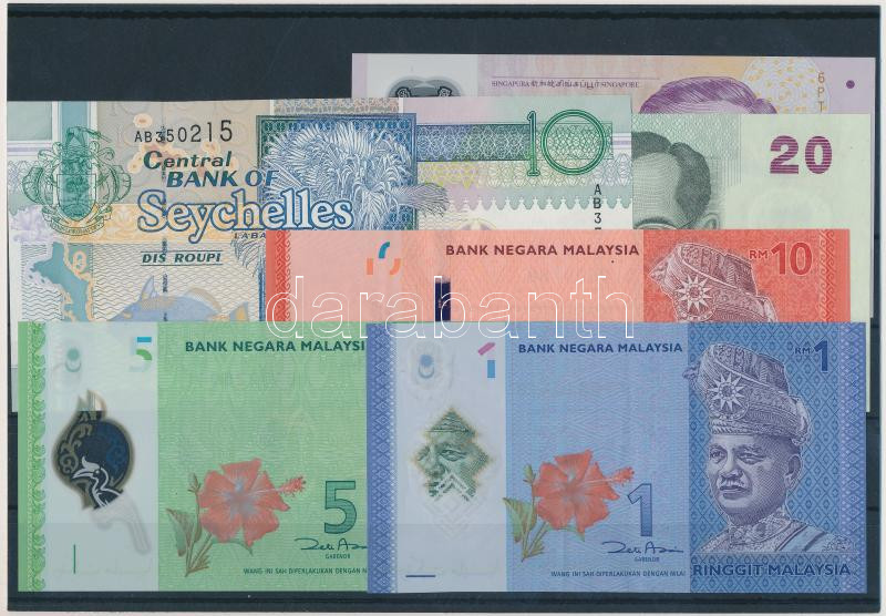 Vegyes: Seychelle szigetek 1998. 25R + Thaiföld 2003. 20B + Malajzia 2... https://www.darabanth.com/de/276-Fernauktion/276.0/Numismatik/Weltweit-Banknoten~300014/Vegyes-Seychelle-szigetek-1998-25R-plus-Thaifold-2003-20B-plus-Malajzia-2012-1R-plus-5R-plus-10R-plus-SzingapC3~II1409866