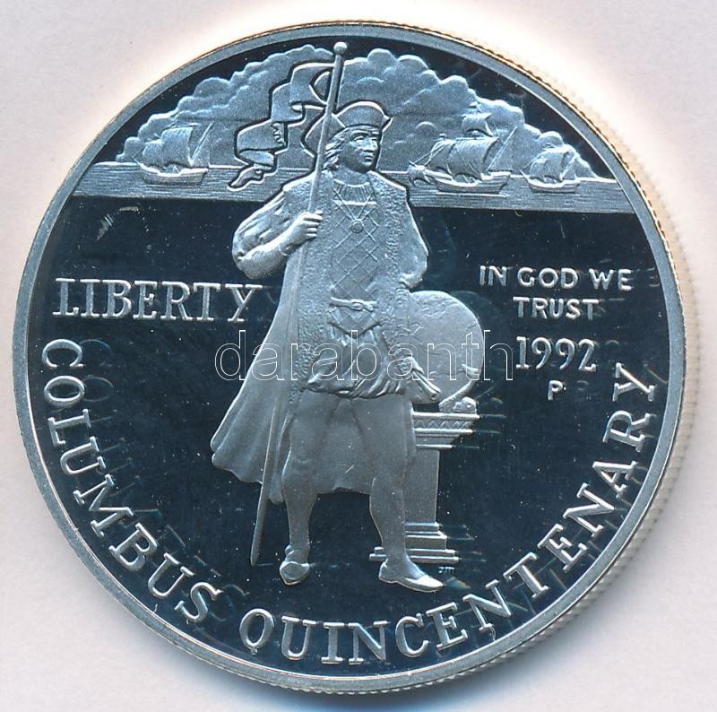 Amerikai Egyesült Államok 1992P 1$ Ag "Kolombusz Kristóf 400. évforduló" tanúsítvánnyal T:PP