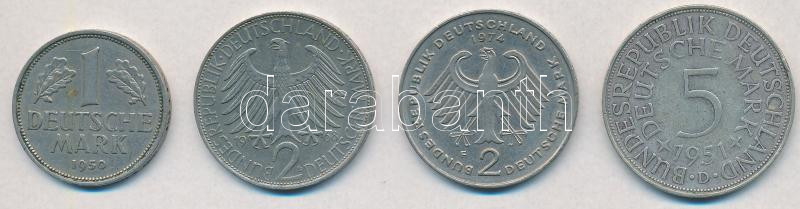 FRG 1950G 1 Mark Cu-Ni + 1951D 5 Mark Ag + 1968D 2 Mark Cu-Ni + 1974F 2 Mark Cu-Ni C:XF,VF