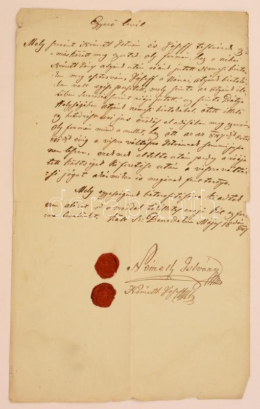 1847 Benedek, Egyező levél, melyben apjuk után örökölt nemesi birtok m... https://www.darabanth.com/de/277-Fernauktion/277.0/Andere-Sammelgebiete/Dokument~16/1847-Benedek-Egyezo-level-melyben-apjuk-utan-orokolt-nemesi-birtok-megosztasarol-egyeznek~II1420851