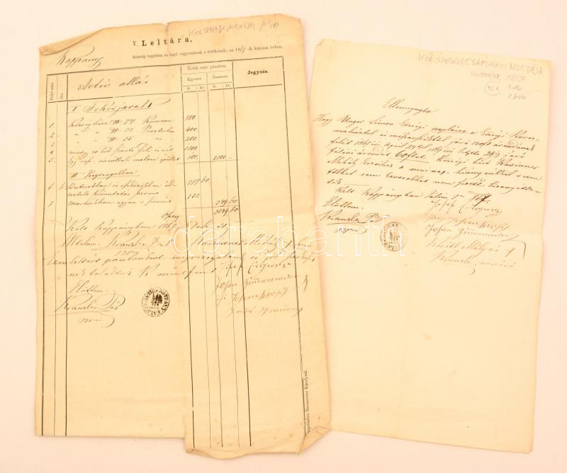 1867 Koppány, Kocsmáros által kiállított ellennyugta és leltár, 2 db https://www.darabanth.com/de/277-Fernauktion/277.0/Andere-Sammelgebiete/Dokument~16/1867-Koppany-Kocsmaros-altal-kiallitott-ellennyugta-es-leltar-2-db~II1418895