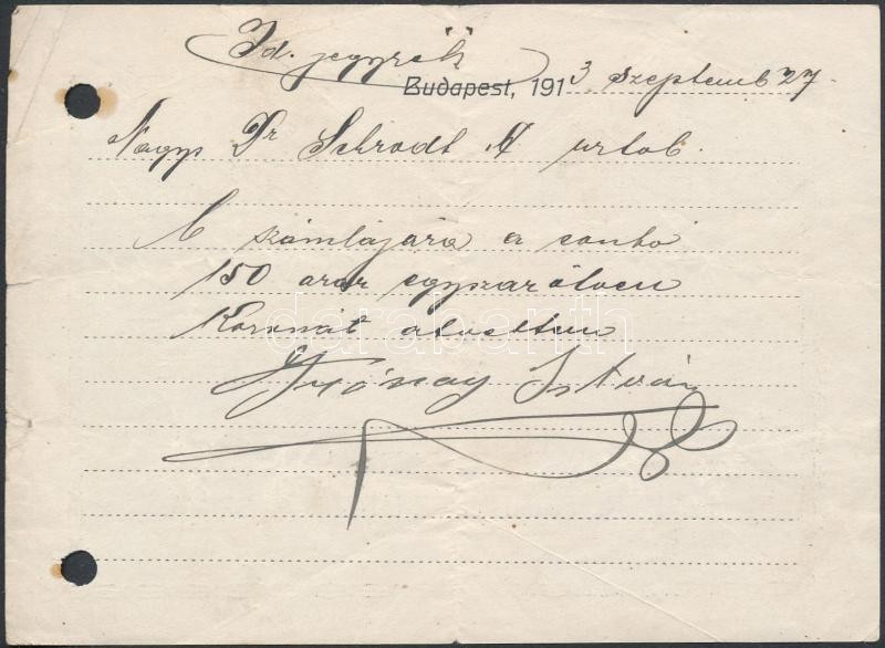 Beschreibung: 1913 Bp., Stephán Nándor utóda Grónay István Aranyműves műhelye nyugta