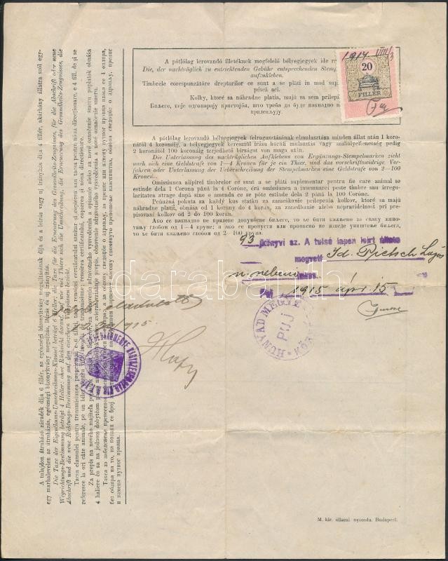 1914 Hunyad vármegyei marhalevél lóvásárra, 20f kiegészítő illetékbély... https://www.darabanth.com/de/277-Fernauktion/277.0/Andere-Sammelgebiete/Dokument~16/1914-Hunyad-varmegyei-marhalevel-lovasarra-20f-kiegeszito-illetekbelyeggel-hajtva-Vieh~II1417535