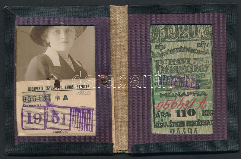 1920 Budapesti Egyesített Városi Vasutak fényképes havi bérletigazolvá... https://www.darabanth.com/de/277-Fernauktion/277.0/Andere-Sammelgebiete/Dokument~16/1920-Budapesti-Egyesitett-Varosi-Vasutak-fenykepes-havi-berletigazolvanya~II1425347