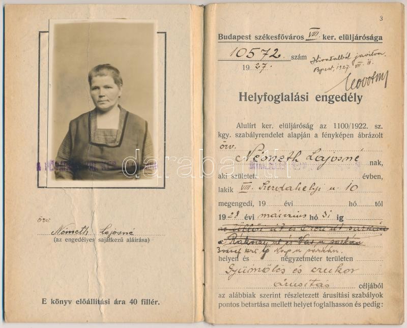 1927 Helyfoglalási Engedély utcai árúsok és cipőtisztitók részére, arc... https://www.darabanth.com/de/277-Fernauktion/277.0/Andere-Sammelgebiete/Dokument~16/1927-Helyfoglalasi-Engedely-utcai-arusok-es-cipotisztitok-reszere-arckepes-kinyithatos-~II1423694