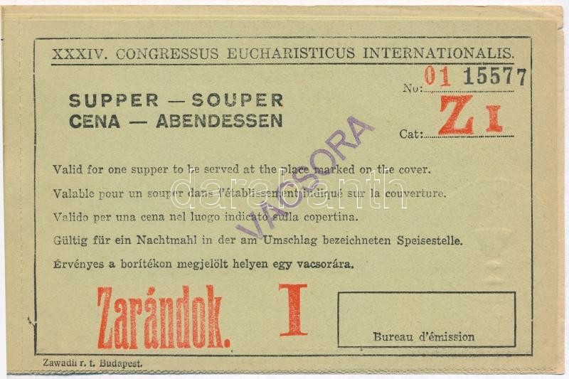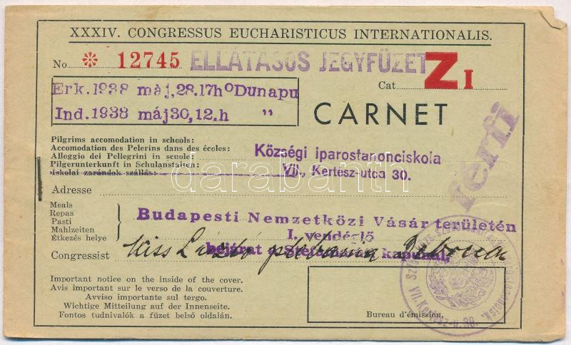 1938 A XXXIV. Nemzetközi Eucharisztikus Kongresszus ellátásos jegyfüze... https://www.darabanth.com/de/277-Fernauktion/277.0/Andere-Sammelgebiete/Dokument~16/1938-A-XXXIV-Nemzetkozi-Eucharisztikus-Kongresszus-ellatasos-jegyfuzete~II1418238